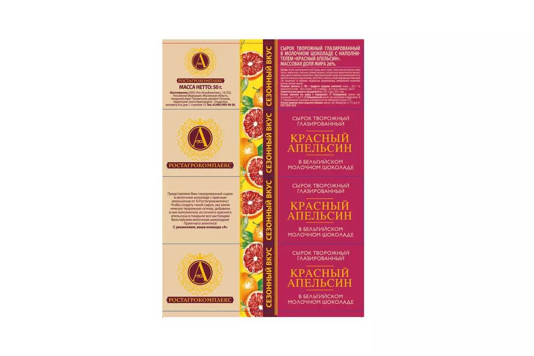 Сырок творожный Ростагрокомплекс красный апельсин в молочном шоколаде 26 % 50 г / Супермаркет