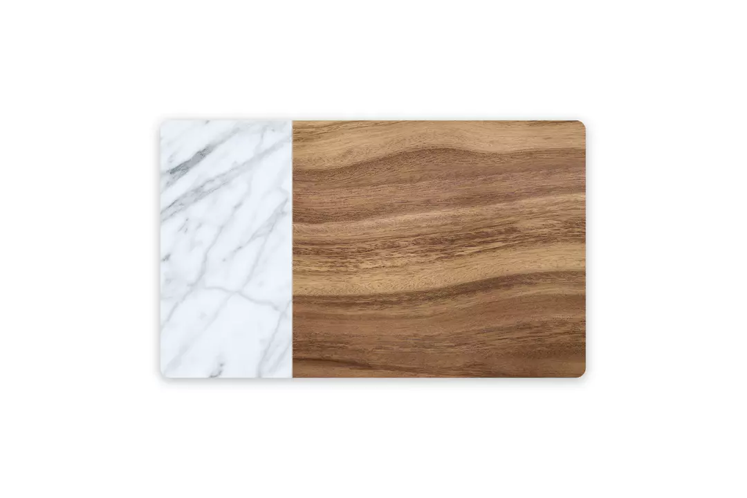 TARHONG Коврик под миски "Acacia Wood+Carrara", коричнево-белый, 48х29см