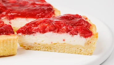 Тонкое рассыпчатое тесто, сливочный крем с лёгкой кислинкой и сочная клубника — классическое сочетание, которое придётся по вкусу многим. Мягкий сыр придаёт начинке шелковистую текстуру и выраженный сливочный вкус, а ягоды добавляют летнюю свежесть и аромат. Этот десерт с нежной кислинкой и мягкой сладостью подходит и для уютного чаепития, и для праздничной подачи.