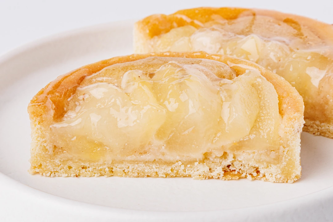 Тарт с мягкой миндальной начинкой и дольками груши. Песочная основа сочетается с франжипаном на сливочном масле и миндальной муке.