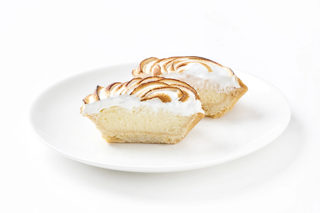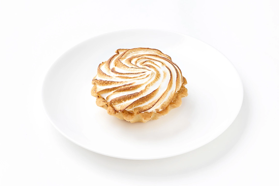 В песочной тарталетке начинка из лёгкого лимонного курда с деликатной кислинкой. Вкус получается свежим, с умеренной сладостью благодаря белому шоколаду. Сверху шапочка из нежного белкового крема с тонким карамельным оттенком. Оригинальность десерту придаёт контраст рассыпчатого теста и воздушной серединки. Лакомство напоминает домашнюю выпечку, но с более выразительным сочетанием вкусов.