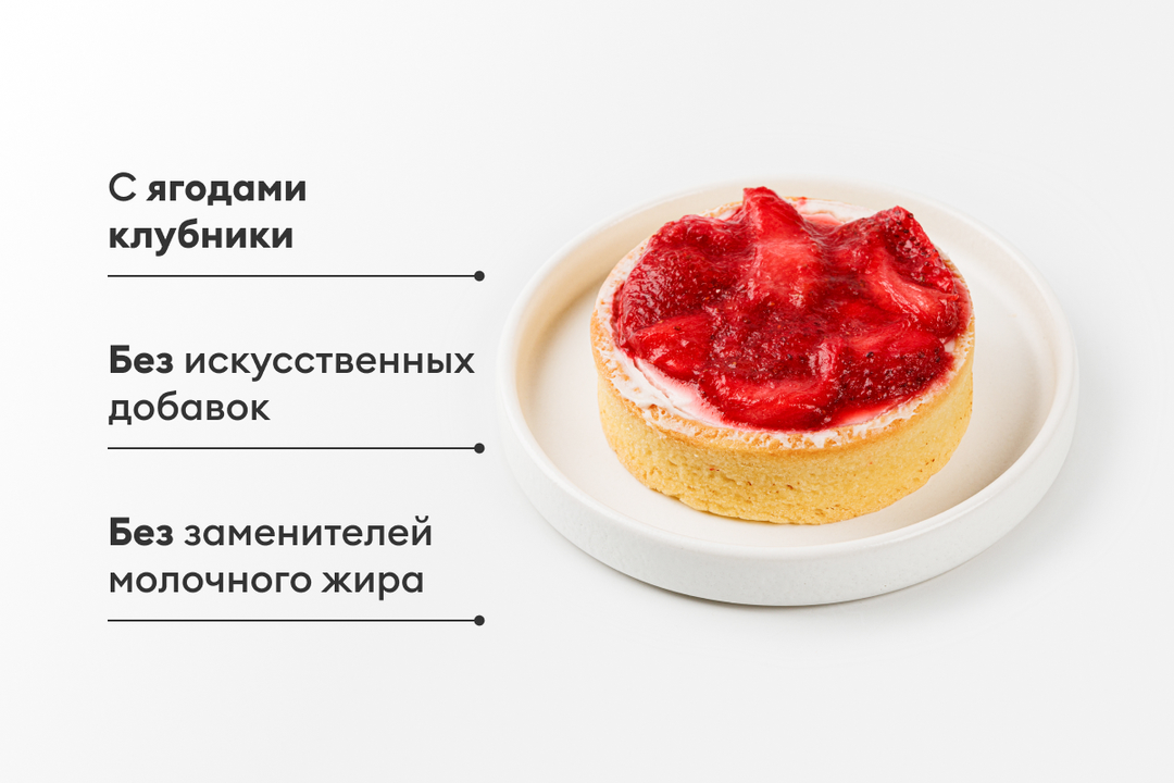 Десерт с нежным сырным кремом и ягодами клубники. Состав проверен: нет заменителей молочного жира, сорбиновой кислоты и искусственных красителей