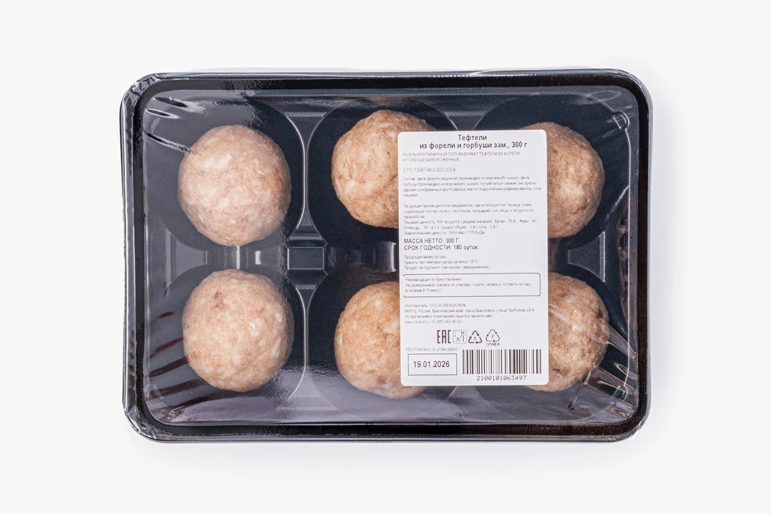 Тефтели из рыбного филе станут удачным решением, когда нужно быстро накрыть на стол. Сочный фарш приготовлен из мяса горбуши и форели. Это замороженный полуфабрикат, его можно потушить или запечь в духовке. Добавьте гарнир по вкусу, тефтели хорошо сочетаются со свежими овощами и рагу, с крупами и картофельным пюре. Также из них получается аппетитный рыбный суп. Вам потребуется минимум времени, чтобы приготовить сытный обед или ужин.