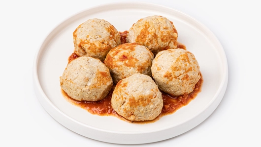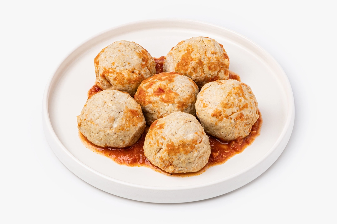 Нежные куриные тефтели в густом томатном соусе станут быстрым и сытным вариантом горячего обеда или ужина для всей семьи. Мы смешали мясо с хлебом и сливками, добавили привычные приправы, поэтому фарш получился мягким, сочным и слегка пикантным. Соус приготовлен из консервированных томатов с добавлением запечённого сладкого перца и пассерованного лука. Достаточно разогреть тефтели в течение нескольких минут — и аппетитное блюдо готово. Их можно подавать с макаронами, рисом и отварным картофелем. Продукт не содержит соевый белок.