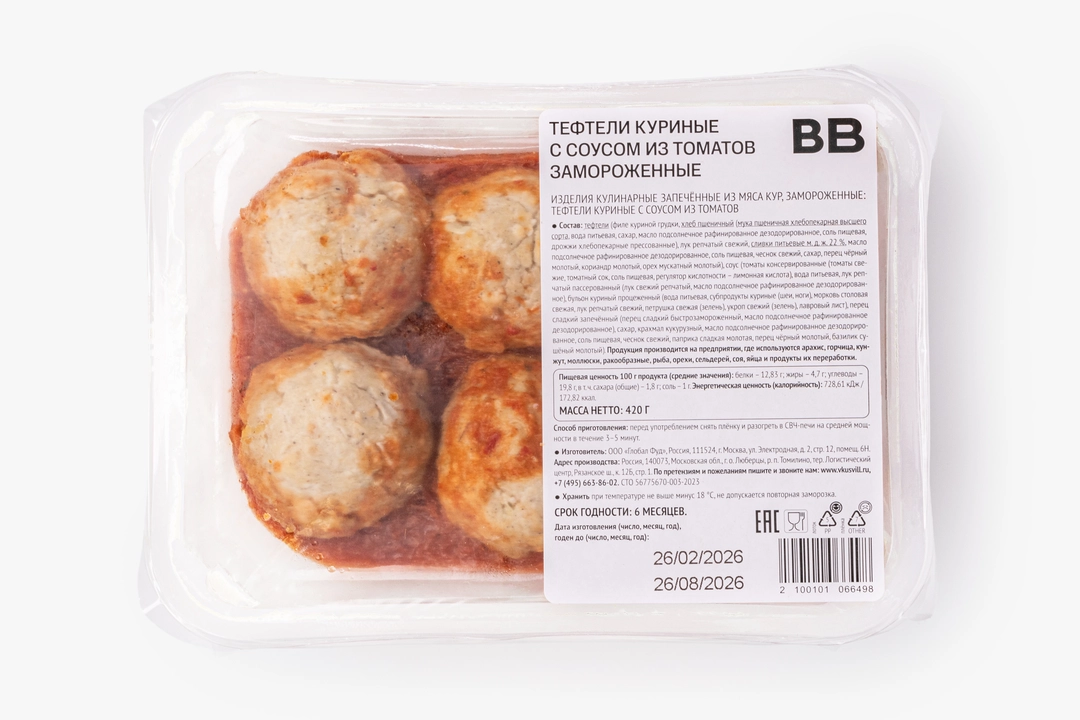 Тефтели куриные с соусом из томатов, замороженные