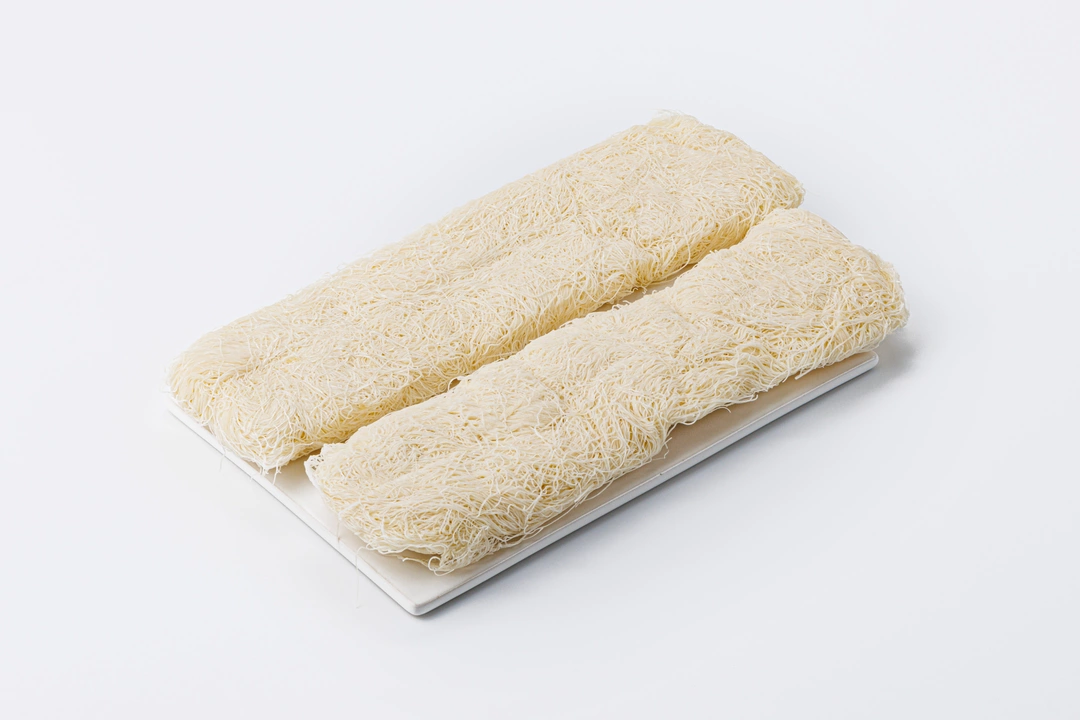 Тесто «Катаифи» - это вид вытяжного теста родом из Ливана и Сирии для любых видов выпечки. Оно часто используется в ближневосточной кухне для приготовления сладостей и десертов. Тесто катаифи представляет собой тонкие нити, которые растягиваются и скручиваются вручную. За необычный вид это тесто называют «волосами ангела», тем самым подчеркивая его оригинальность. Оно не так хорошо известно, как фило, хотя тоже универсальное тесто. Страна-производитель Россия