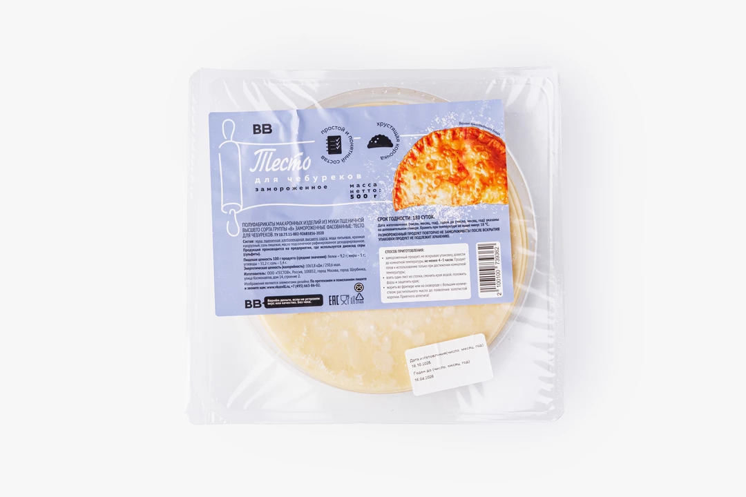Приготовление домашних чебуреков никогда не было таким удобным! Мы замесили традиционное бездрожжевое тесто, затем нарезали его на идеальные круги одинаковой толщины, чтобы можно было сразу приступить к готовке. Это тесто станет вашем незаменимым помощником, ведь благодаря нему вы сможете сэкономить время на приготовлении любимых блюд, не экономя на их вкусе. Количество заготовок из теста 14 шт (может иногда варьироваться, без изменения веса).