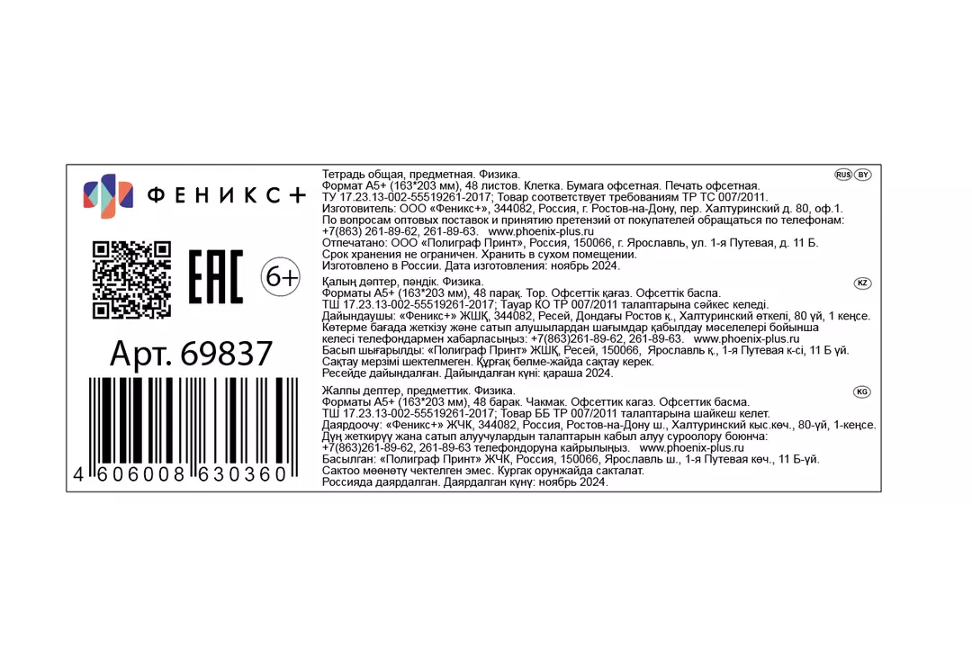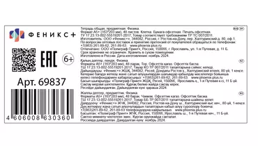 Тетрадь общая Феникс+ предметная Селфи Физика A5 48 листов в клетку на скрепке
