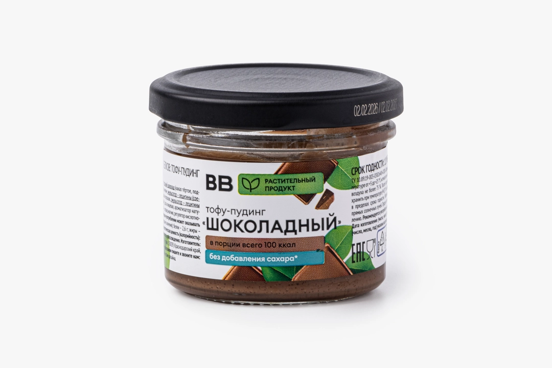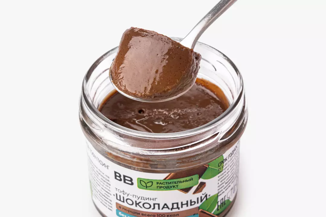 Нежный тофу-пудинг с насыщенным шоколадным вкусом. Основа из соевых бобов даёт мягкую кремовую консистенцию, а горький шоколад и какао-порошок формируют выраженный шоколадный профиль. Подсластители сохраняют мягкую сладость без добавления рафинированного сахара. Вкус получается сбалансированным, с лёгкими ванильными нотами. Пудинг подойдёт в качестве вечернего десерта или перекуса. Особенно понравится тем, кто ищет растительные альтернативы с ярким шоколадным характером.