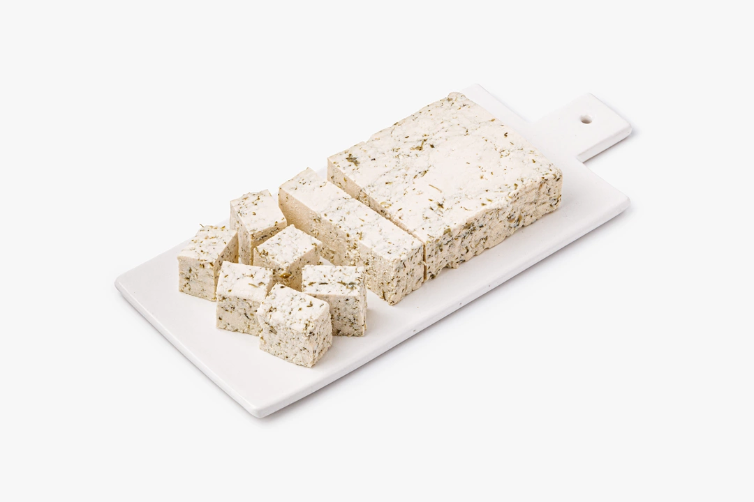 Этот ароматный тофу сочетает нейтральную соевую основу с яркими пряными акцентами. Свежий укроп придает травянистую свежесть, а чеснок — пикантную нотку, делая продукт самодостаточной закуской. Благодаря плотной текстуре его удобно нарезать кубиками или ломтиками, жарить, запекать или добавлять в салаты. В холодном виде хорошо сочетается с овощами, зеленью и злаковыми. При обжарке корочка становится румяной, а вкус — более ярким. Произведён из натуральных соевых бобов с добавлением свежих пряностей.