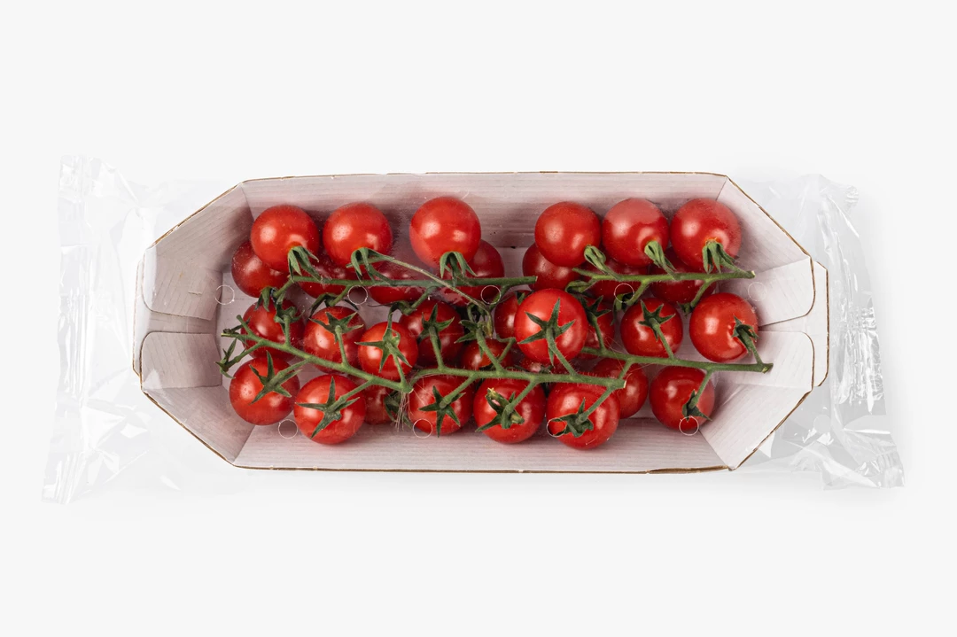 Миниатюрные и сочные томаты черри на веточке с выраженным сладковатым вкусом. Кожица тонкая, мякоть нежная. Идеальны для салатов, хрустящих брускетт и горячих блюд.