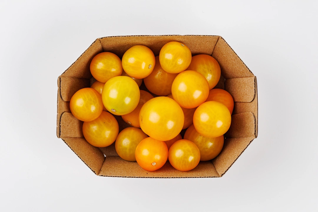 Ярко-жёлтый цвет, идеальная форма, одинаковый размер – помидоры Черри не только порадуют своим сладким и нежным вкусом, но и станут украшением многих блюд. Желтый цвет обусловлен высоким содержанием бета-каротина, полезного для организма. Размер томатов Черри позволяет не нарезать их. Есть целиком такой небольшой, но очень сочный томат особенно приятно! Помидоры Черри – бессменный ингредиент свежих нарезок, овощных салатов, салата Цезарь и брускетт.