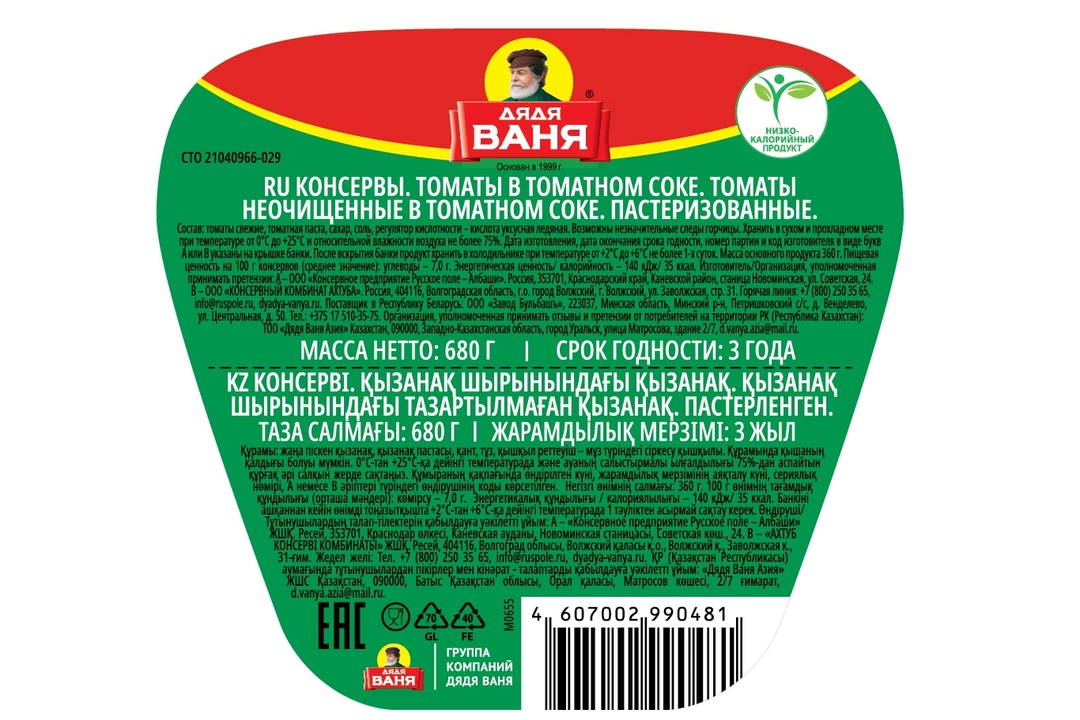 Томаты Дядя Ваня в томатном соке с/б 680 г