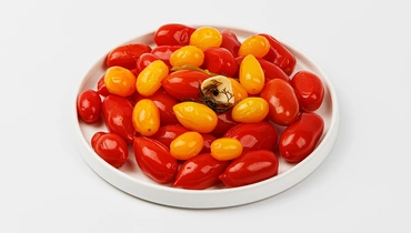 Ассорти красных и жёлтых томатов черри в пряном маринаде с зеленью, чесночком и специями. Классическая закуска, которая не только порадует своим сбалансированным сладковато-пикантным вкусом, но и украсит стол при подаче.