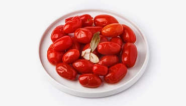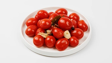 Маринованные томаты черри отличаются не только нарядным внешним видом, но и приятным кисло-сладким вкусом с пикатными нотами. У них упругая, плотная кожица, под которой скрывается сочная мякоть. Такие томаты будут выигрышно смотреться при декоре сытных блюд и в закусочных тарелках.
