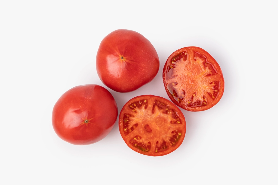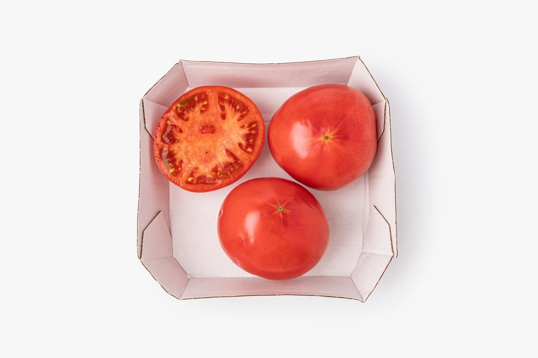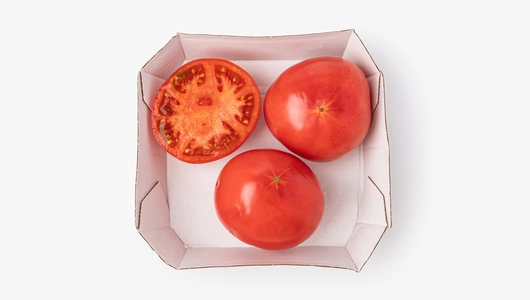 Мясистые томаты с насыщенным ароматом и тонкой кожицей. На срезе виден красивый рисунок семенных камер, благодаря которому помидоры выглядят особенно аппетитно. Мякоть плотная, сочная, со сладким вкусом и лёгкой фруктовой нотой. Такие томаты хорошо подходят для салатов, соусов и запекания, а также для подачи с оливковым маслом и зеленью.