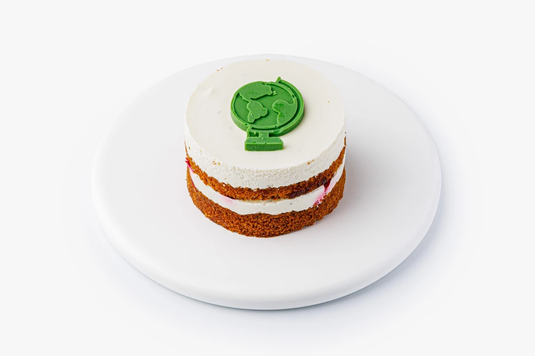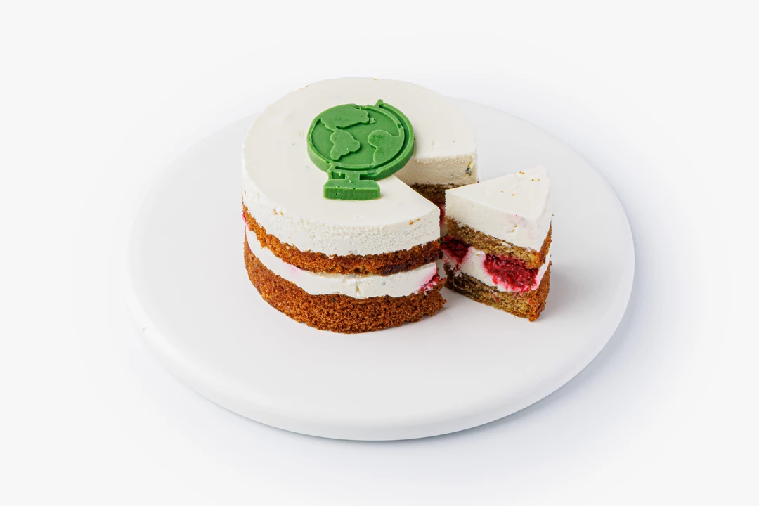 Яркий десерт с необычным вкусом. В мягкие бисквитные коржи мы добавили зелёный чай матча, а в воздушный творожный крем — базилик. Для баланса положили цельные ягоды малины, которые придают каждому кусочку лёгкую кислинку и выразительность. Торт украшен декором в виде глобуса из белого шоколада с добавлением матчи и удивит сочетанием травянисто-свежего и нежного ягодного вкусов, как напоминание о лете и тёплых днях. Мини-формат подходит для подачи на 2–3 персоны.