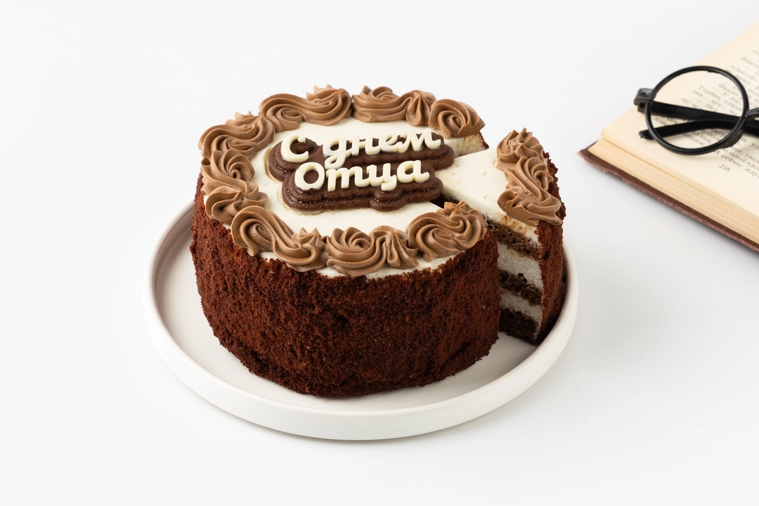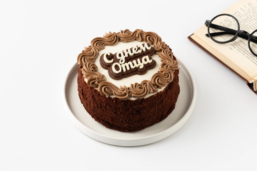Торт бисквитный "С Днем Отца!" шоколадный с вишней