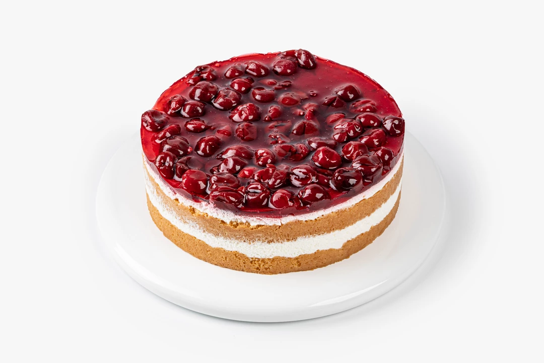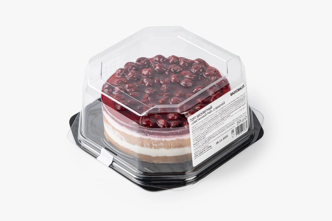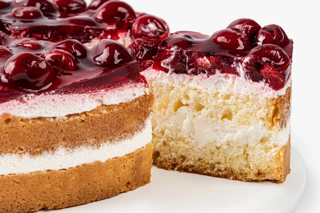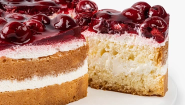 Бисквитный торт со сметанным кремом и ягодами вишни. Сметана, сливки и сгущённое молоко придают десерту ярко выраженный сливочный вкус.