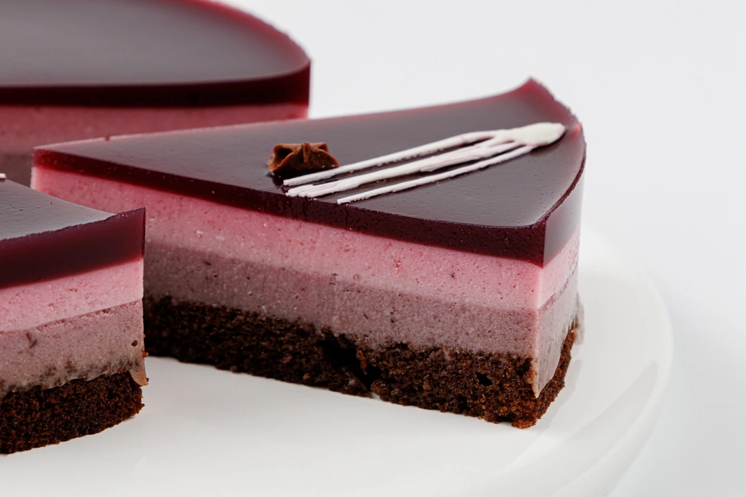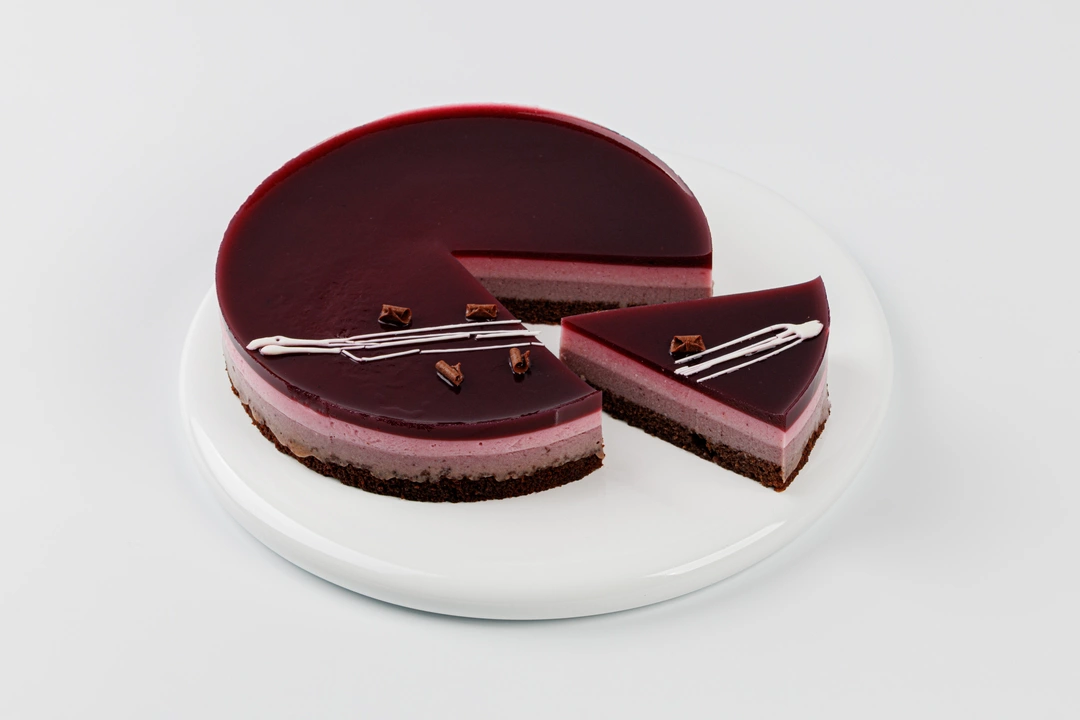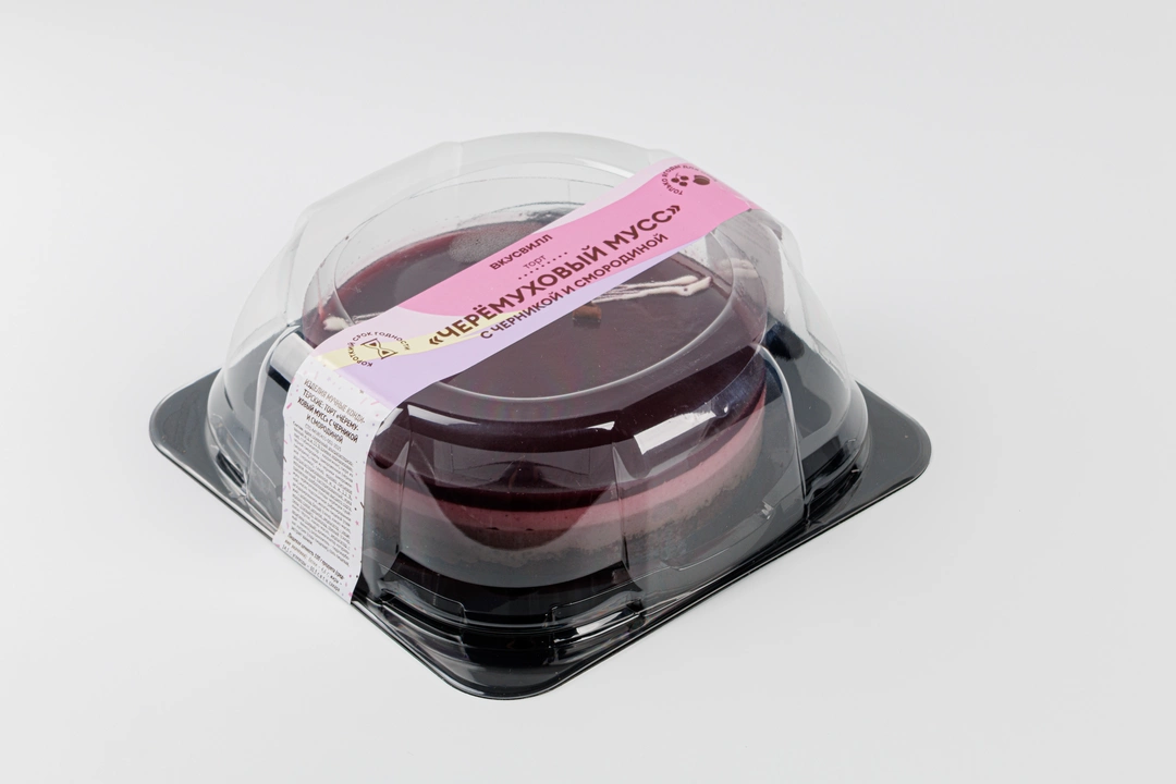 Лёгкий муссовый торт с ягодным акцентом. В основе — бисквит с добавлением черёмуховой муки и тёмного шоколада, а также нежный смородиновый крем. Слой ягодного желе дополняет муссовую часть торта.