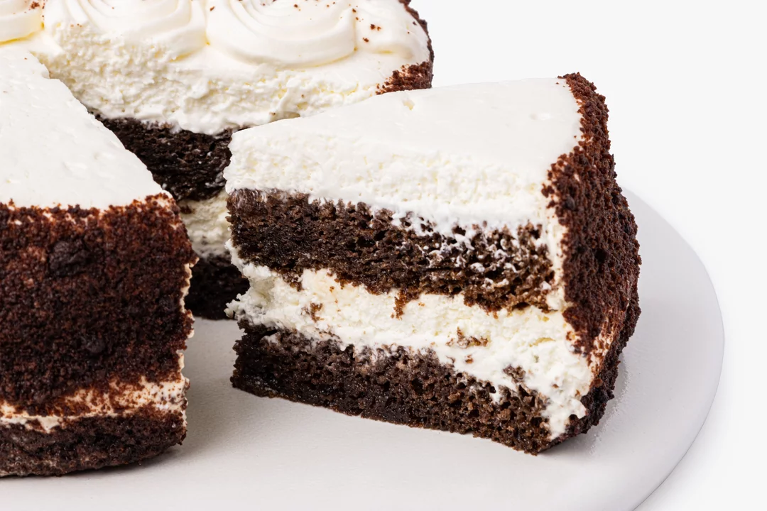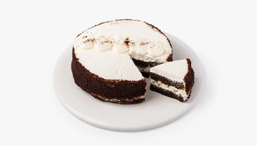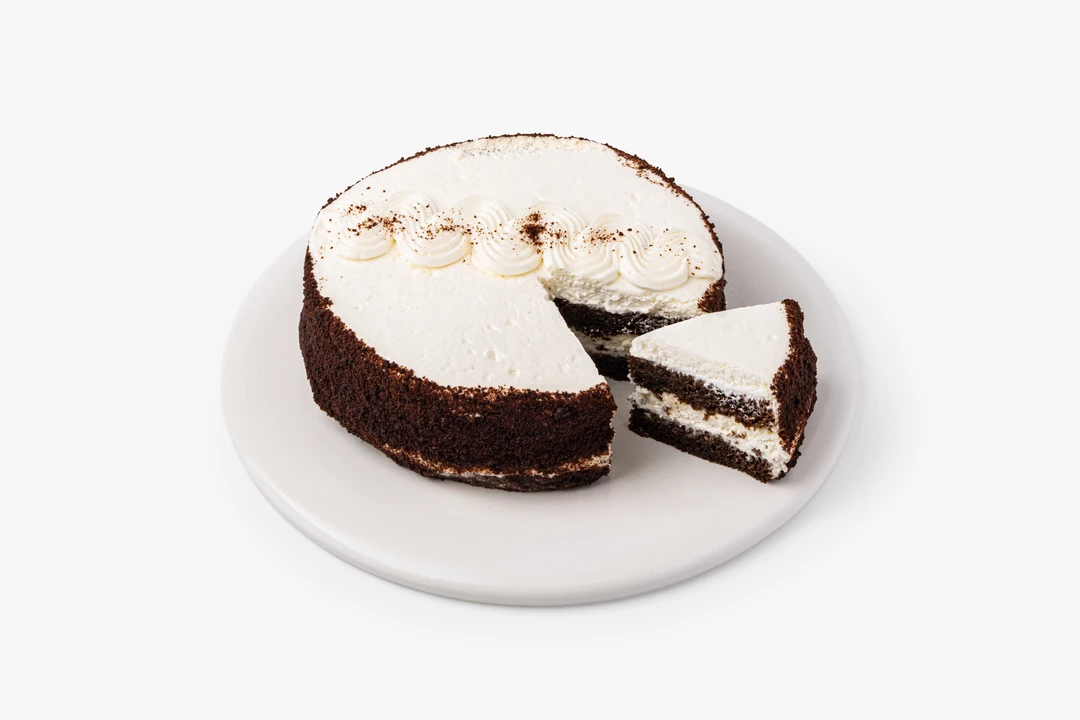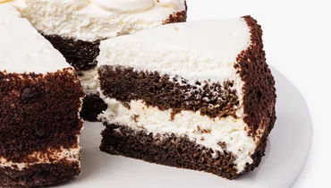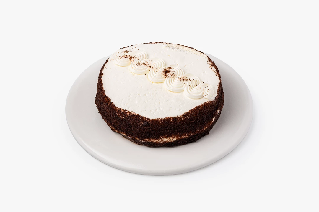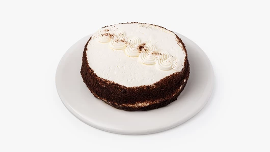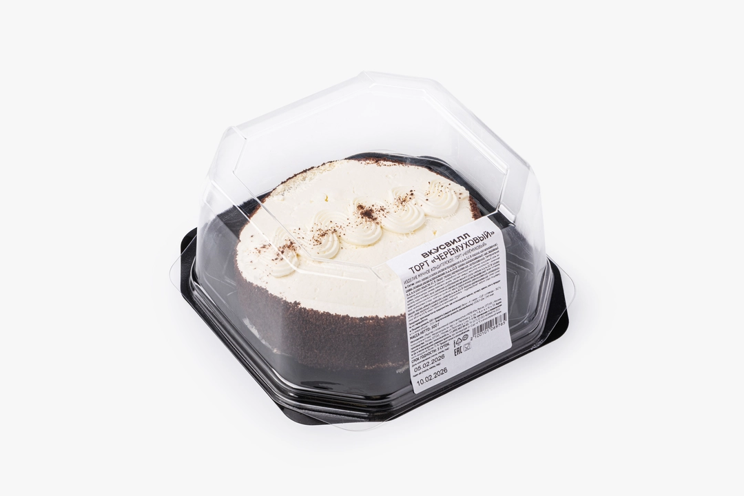 Торт с добавлением черёмуховой муки. Крем на основе творожного сыра, сливок и сметаны, дополнен сгущённым молоком.