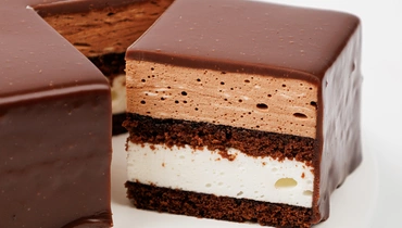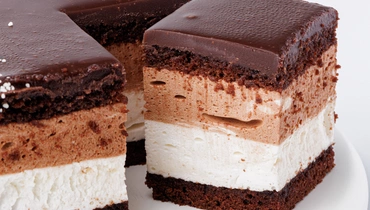 Классический торт с двумя слоями воздушного суфле — ванильного и шоколадного. Основа — мягкий бисквит, пропитанный лёгким сиропом с ноткой коньяка, который подчёркивает вкус и делает текстуру ещё нежнее. Сливочное масло и сгущённое молоко придают суфле мягкость и бархатистость с умеренной сладостью.