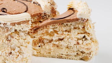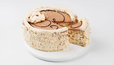 «Киевский» — это воздушные белково-ореховые коржи-безе, прослоённые нежным кремом. За основу взят аутентичный рецепт — с тем лишь отличием, что вместо пяти видов орехов здесь обжаренные грецкие. Такой торт не только подойдёт для домашнего чаепития, но и станет приятным вкусным презентом.