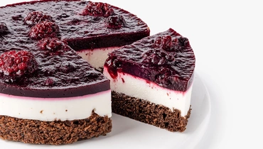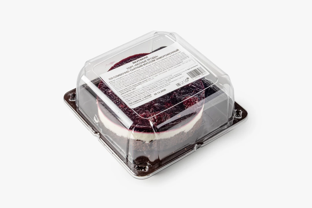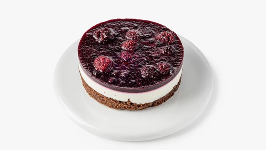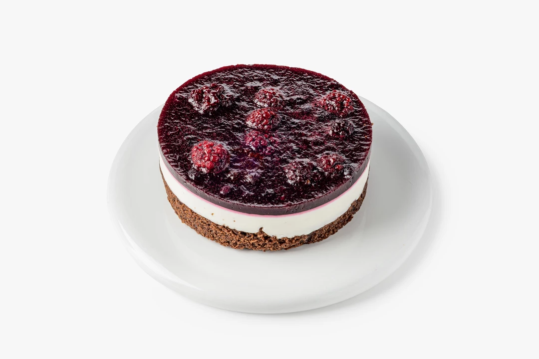 Торт со сливочно-сырным муссом и лесными ягодами. Нежная текстура творожного сыра сочетается с чёрной смородиной, ежевикой и голубикой. Замороженный формат.