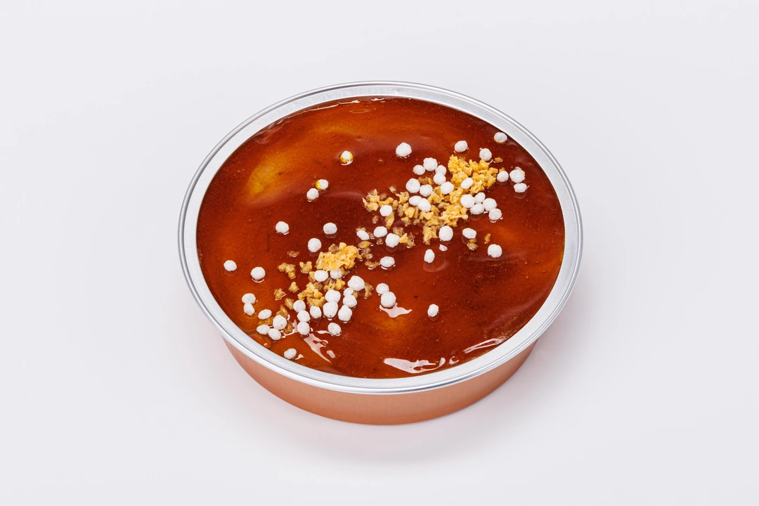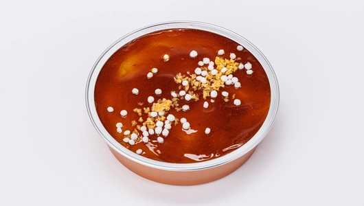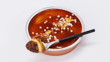 Мягкий бисквит с шоколадно-имбирными нотами и яркой фруктовой начинкой. Пюре из манго добавляет десерту сладость с деликатной кислинкой, а кокосовая стружка — лёгкий хруст.