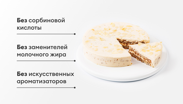 Замороженный торт со вкусом марципана. Состав проверен: нет заменителей молочного жира, сорбиновой кислоты и искусственных ароматизаторов