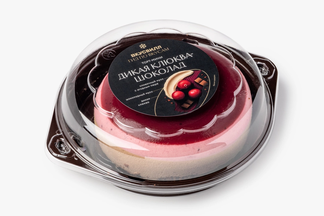 Оригинальный муссовый торт на подложке из плотного шоколадного бисквита, созданный для ценителей необычных десертов. Муссовых слоя здесь два, оба приготовлены на сливочной основе. Но один с молочным шоколадом, а второй — с малиновым пюре. Вкус торта изобилует кремово-ягодными нотами, которые перекликаются с тонкой какао-горчинкой. А в послевкусии звучит терпкий клюквенный аккорд — заслуга желейного топпинга, завершающего сложную конструкцию десерта. Торт бережно заморожен и может храниться в морозильной камере целый год, сохраняя выразительный вкус и правильную текстуру. Удобно на случай позднего спонтанного чаепития или неожиданного прихода гостей.