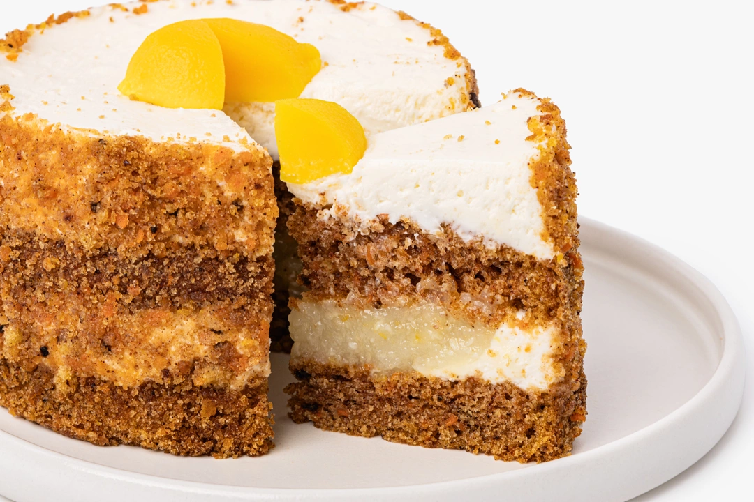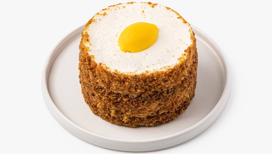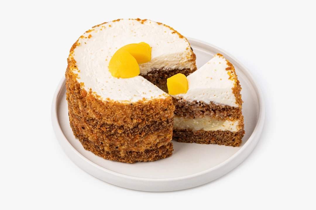 Нежный бисквитный торт из морковно-цитрусовых коржей с прослойками творожно-сливочного крема. Морковь придаёт тесту натуральную сладость, а лимонный сок и цедра добавляют свежий акцент. Воздушный творожный крем дополняет гармонию вкусов сливочными нотами. Для контраста мы положили немного дроблёных ядрышек грецкого ореха, чтобы их терпкость и хруст оттеняли изысканность лакомства. Подавайте торт в качестве десерта к чашечке чая или кофе