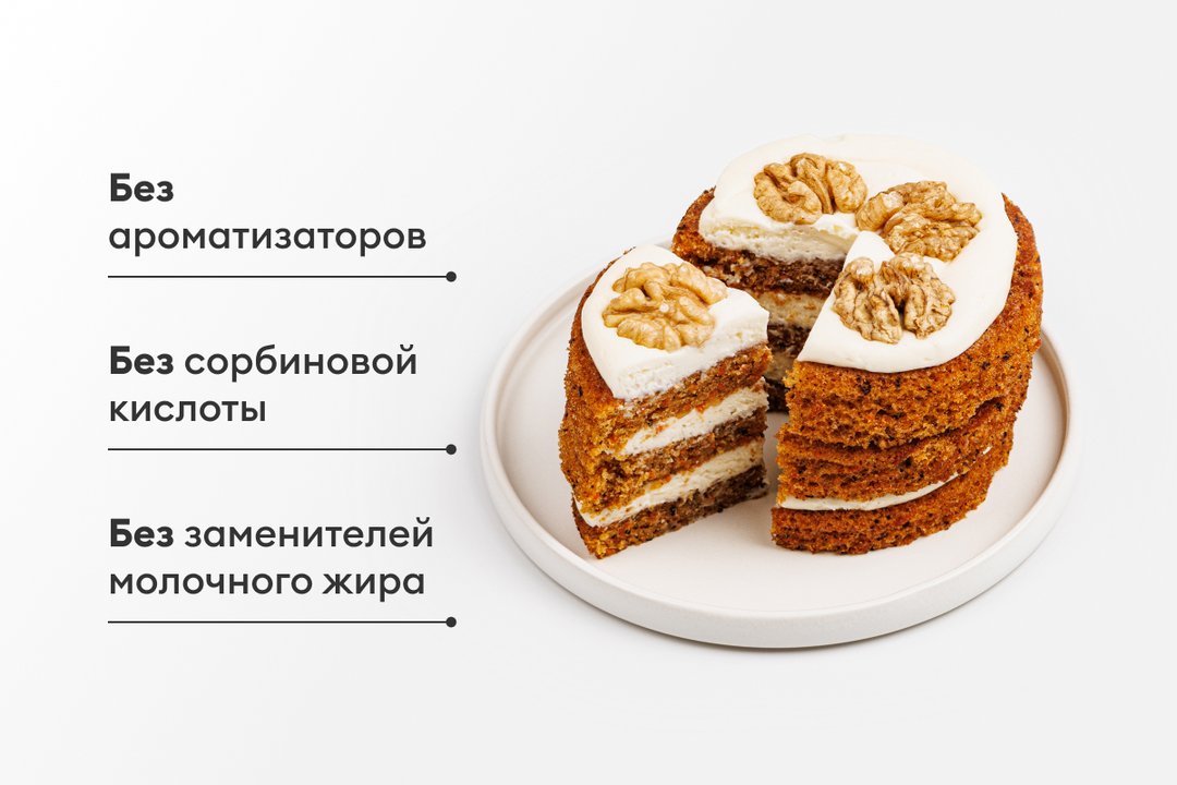 Готовим торт без заменителей молочного жира и сорбиновой кислоты. Короткий срок годности — всего 5 суток. Не добавляем ароматизаторов