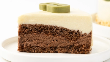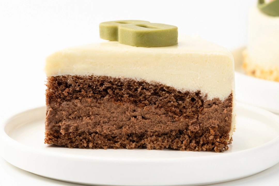 Праздничный торт со слоями мусса из белого и тёмного шоколада. Украшен тематическим декором.