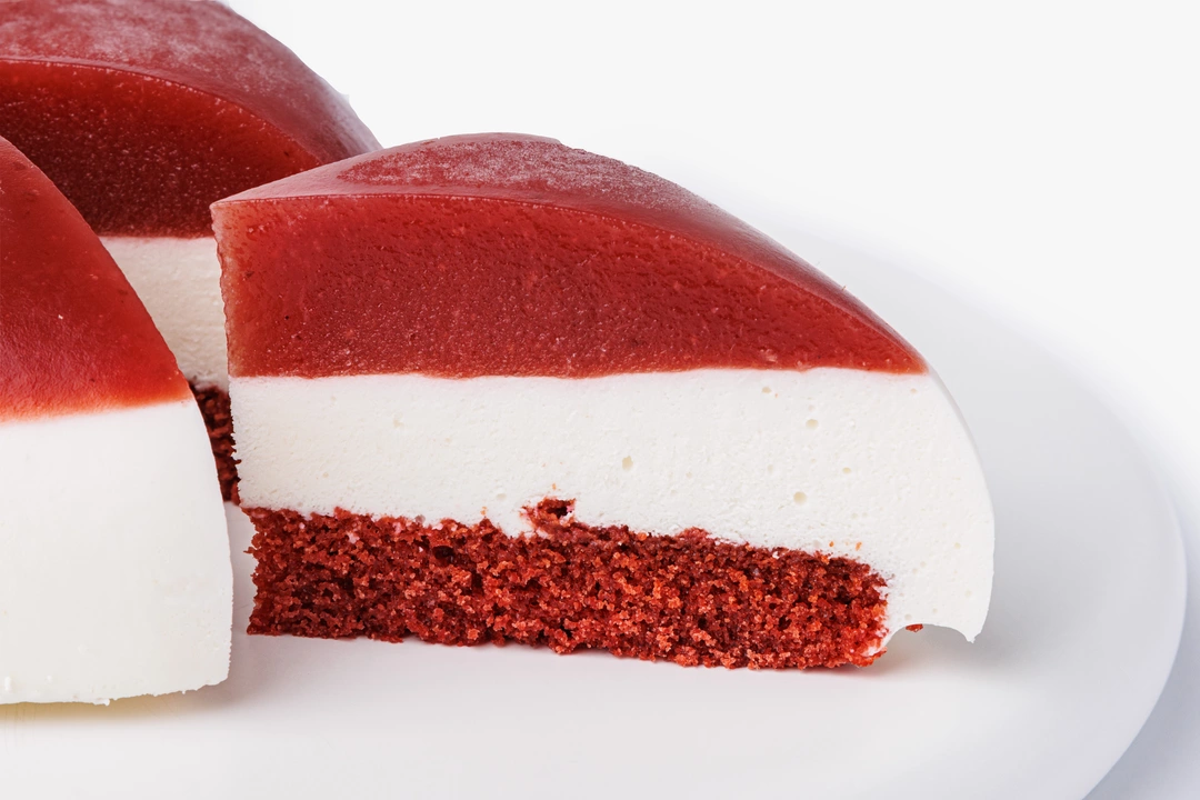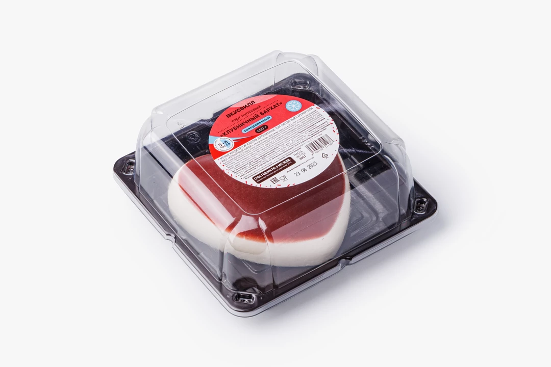 Лёгкий десерт со сливочно-ягодным вкусом. Нежный бисквитный корж из пшеничного теста и воздушный мусс из творожного сыра, сливок и натурального клубничного пюре. Торт заморожен по щадящей технологии, сохраняя все свои вкусовые качества. Бархатистое и деликатное лакомство к чаю, кофе или в качестве романтического подарка. Дефростация при комнатной температуре 2-3 часа, в холодильнике: 5-6 часов.