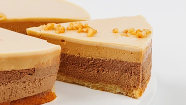 Воздушный торт с карамельным вкусом, в котором сочетаются два слоя мусса — с молочным и тёмным шоколадом. Лёгкий бисквит служит основой, а верхний слой покрыт сливочной карамелью и украшен дроблёным арахисом.