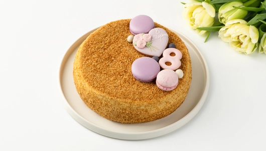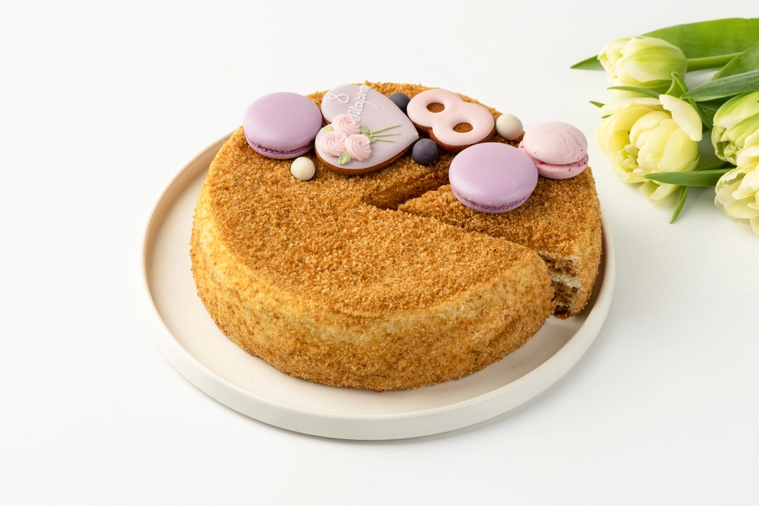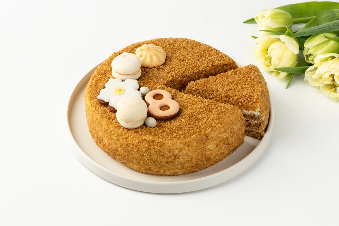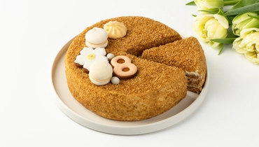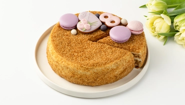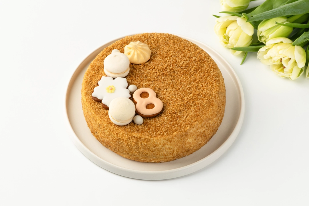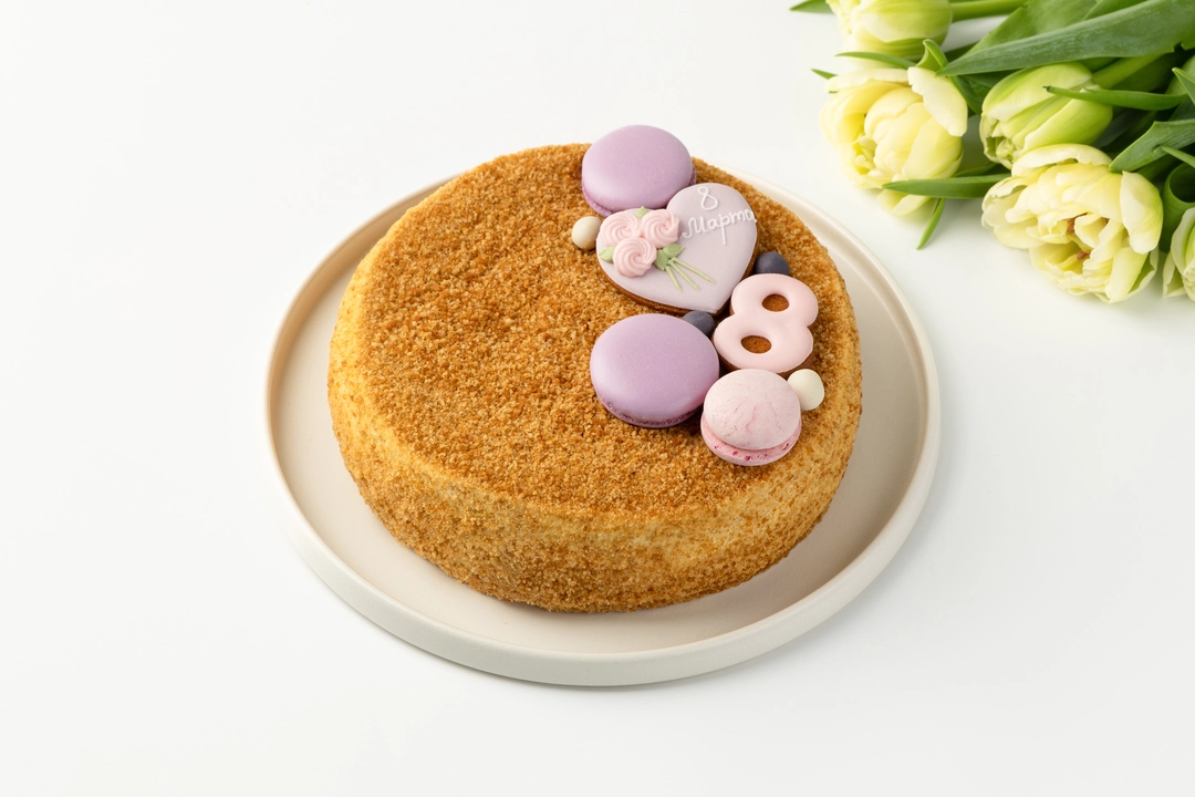 С ОРАНЖЕВЫМ ДЕКОРОМ крем (сливки питьевые ультрапастеризованные м.д.ж. 33% (сливки нормализованные), сметана м.д.ж. 20% (сливки, закваска молочнокислых микроорганизмов), сахар, сметана м.д.ж. 30% (сливки нормализированные, закваска)), бисквит (мука пшеничная хлебопекарная высшего сорта, сахар, меланж яичный жидкий пастеризованный, мёд натуральный цветочный, масло сладко-сливочное несоленое м.д.ж. 72,5% (сливки пастеризованные), уксус яблочный 6%, разрыхлитель - гидрокарбонат натрия (сода пищевая)), декор (крошка (мука пшеничная хлебопекарная высшего сорта, сахар, меланж яичный жидкий пастеризованный, мёд натуральный цветочный, масло сладко-сливочное несоленое м.д.ж. 72,5% (сливки пастеризованные), уксус яблочный 6%, разрыхлитель - гидрокарбонат натрия (сода пищевая)), "Безе-макарон" светло-желтое (сахар, белок яичный жидкий пастеризованный, белая шоколадная масса (сахар, масло какао, молоко сухое цельное, молоко сухое обезжиренное, молочный жир, эмульгатор - лецитины (соевый), ароматизатор натуральный - ваниль), сливки питьевые ультрапастеризованные м.д.ж. 33% (сливки нормализованные), краситель - бета-каротин, антиокислитель - альфа-Токоферол), пряник "Цветок" (мука пшеничная хлебопекарная высшего сорта, сахар, масло сладко-сливочное несоленое м.д.ж. 72,5% (сливки пастеризованные), желток яичный жидкий пастеризованный, соль пищевая, разрыхлитель-гидрокарбонат натрия (сода пищевая), специи молотые (корица, имбирь, мускатный орех, кардамон, перец белый), глазурь (белок яичный сухой, сахар, регулятор кислотности-лимонная кислота, экстракт сафлора, краситель - кармины)), пряник "Цифра" (мука пшеничная хлебопекарная высшего сорта, сахар, масло сладко-сливочное несоленое м.д.ж. 72,5% (сливки пастеризованные), желток яичный жидкий пастеризованный, соль пищевая, разрыхлитель-гидрокарбонат натрия (сода пищевая), специи молотые (корица, имбирь, мускатный орех, кардамон, перец белый), глазурь (белок яичный сухой, сахар, экстракт сафлора, регулятор кислотности-лимонная кислота)), безе желтое (сахар, белок яичный жидкий пастеризованный, краситель - бета-каротин, антиокислитель - альфа-Токоферол), драже желтое (белая шоколадная масса (сахар, масло какао, молоко сухое цельное, молоко сухое обезжиренное, молочный жир, эмульгатор - лецитины (соевый), натуральный ароматизатор - ваниль), отруби пшеничные экструдированные (отруби пшеничные, мука пшеничная хлебопекарная первого сорта, мука рисовая, соль пищевая), комплексная пищевая добавка (масло подсолнечное рафинированное дезодорированное, вода питьевая, эмульгатор - лецитины (соевый), краситель - бета-каротин, антиокислитель - альфа-Токоферол), драже белое (отруби пшеничные, мука пшеничная хлебопекарная первого сорта, мука рисовая, соль пищевая), белая шоколадная масса (сахар, масло какао, молоко сухое цельное, молоко сухое обезжиренное, молочный жир, эмульгатор - лецитины (соевый), натуральный ароматизатор - ваниль)), патока крахмальная карамельная кислотная. С СИРЕНЕВЫМ ДЕКОРОМ крем (сливки питьевые ультрапастеризованные м.д.ж. 33% (сливки нормализованные), сметана м.д.ж. 20% (сливки, закваска молочнокислых микроорганизмов), сахар, сметана м.д.ж. 30% (сливки нормализированные, закваска)), бисквит (мука пшеничная хлебопекарная высшего сорта, сахар, меланж яичный жидкий пастеризованный, мёд натуральный цветочный, масло сладко-сливочное нес