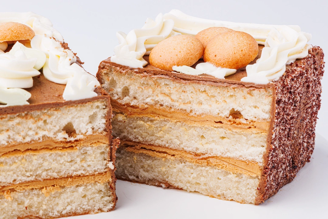 Шоколадная версия советской Сказки: ванильные бисквиты, щедро пропитанные кремом на вареном сгущённом молоке, и классический декор из масляных розочек. Торт получился лёгкий, но при этом сытный, с тем самым легендарным вкусом!