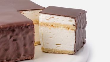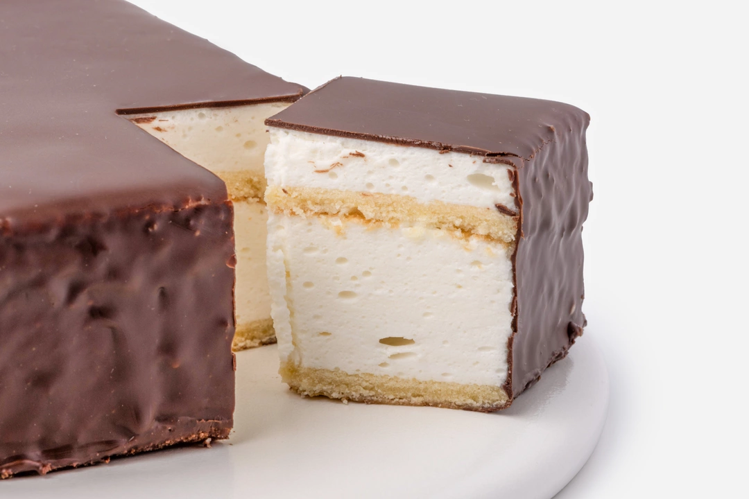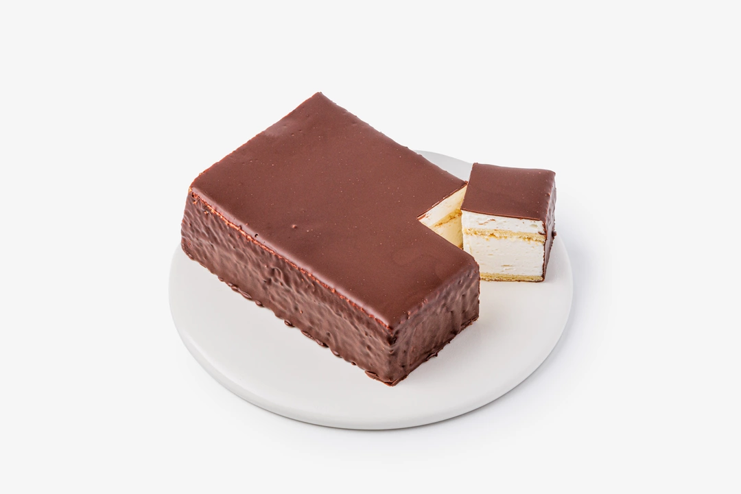 Воздушное сливочное суфле на тонком ванильном бисквите, облицованное хрустящим горьким шоколадом. Лёгкий и нежный десерт для ценителей классических вкусов, который приятно разделить с близкими за чашкой чая.