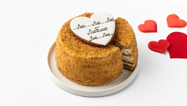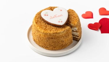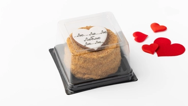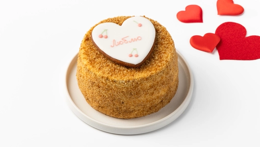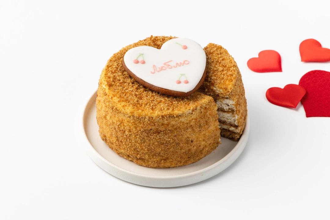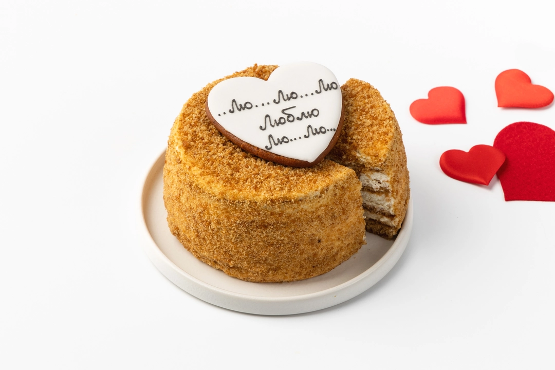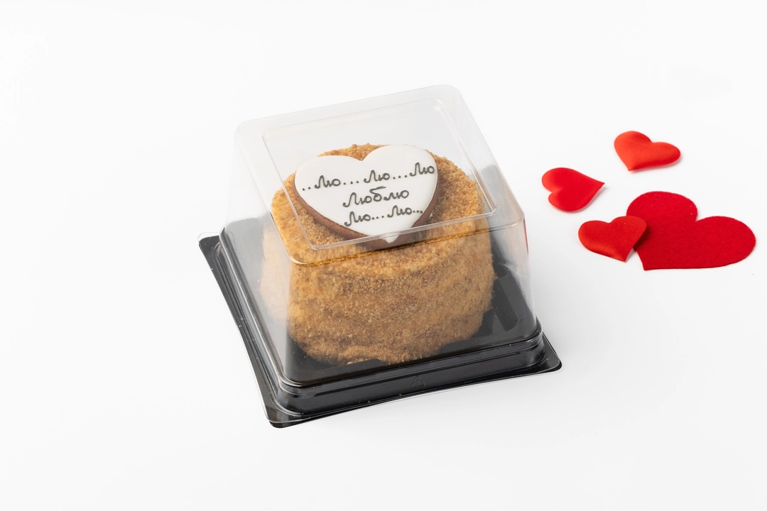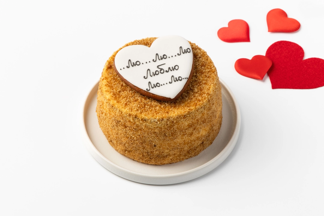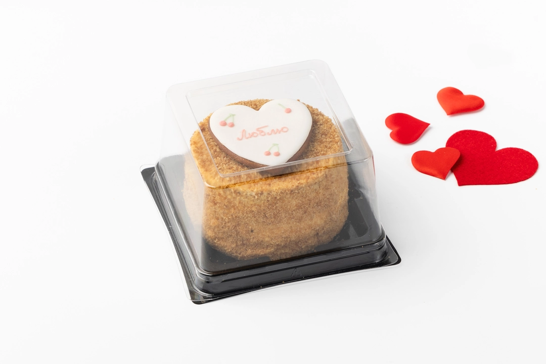 с пряником "ЛЮБЛЮ" С ВИШЕНКАМИ крем (сливки питьевые ультрапастеризованные м.д.ж. 33% (сливки нормализованные), сметана м.д.ж. 20% (сливки, закваска молочнокислых микроорганизмов), сахар, сметана м.д.ж. 30% (сливки нормализированные, закваска)), бисквит (мука пшеничная хлебопекарная высшего сорта, сахар, меланж яичный жидкий пастеризованный, мёд натуральный цветочный, масло сладко-сливочное несоленое м.д.ж. 72,5% (сливки пастеризованные), уксус яблочный 6%, разрыхлитель - гидрокарбонат натрия (сода пищевая)), декор (пряник имбирный (мука пшеничная хлебопекарная высшего сорта, сахар, масло сладко-сливочное несоленое м.д.ж. 72,5% (сливки пастеризованные), желток яичный жидкий пастеризованный, соль пищевая, разрыхлитель - гидрокарбонат натрия (сода пищевая), специи молотые (корица, корень имбиря, мускатный орех, кардамон, перец белый)), глазурь (белок яичный жидкий пастеризованный, сахар, регулятор кислотности - лимонная кислота, красители (красный свекольный, хлорофиллы)), крошка (мука пшеничная хлебопекарная высшего сорта, сахар, меланж яичный жидкий пастеризованный, мёд натуральный цветочный, масло сладко-сливочное несоленое м.д.ж. 72,5% (сливки пастеризованные), уксус яблочный 6%, разрыхлитель - гидрокарбонат натрия (сода пищевая)), патока крахмальная карамельная). с пряником "ЛЮБЛЮ" крем (сливки питьевые ультрапастеризованные м.д.ж. 33% (сливки нормализованные), сметана м.д.ж. 20% (сливки, закваска молочнокислых микроорганизмов), сахар, сметана м.д.ж. 30% (сливки нормализированные, закваска)), бисквит (мука пшеничная хлебопекарная высшего сорта, сахар, меланж яичный жидкий пастеризованный, мёд натуральный цветочный, масло сладко-сливочное несоленое м.д.ж. 72,5% (сливки пастеризованные), уксус яблочный 6%, разрыхлитель - гидрокарбонат натрия (сода пищевая)), декор (пряник имбирный (мука пшеничная хлебопекарная высшего сорта, сахар, масло сладко-сливочное несоленое м.д.ж. 72,5% (сливки пастеризованные), желток яичный жидкий пастеризованный, соль пищевая, разрыхлитель-гидрокарбонат натрия (сода пищевая), специи молотые (корица, имбирь, мускатный орех, кардамон, перец белый), глазурь (белок яичный сухой, сахар, регулятор кислотности-лимонная кислота, краситель - уголь растительный)), крошка (мука пшеничная хлебопекарная высшего сорта, сахар, меланж яичный жидкий пастеризованный, мёд натуральный цветочный, масло сладко-сливочное несоленое м.д.ж. 72,5% (сливки пастеризованные), уксус яблочный 6%, разрыхлитель - гидрокарбонат натрия (сода пищевая)), патока крахмальная карамельная). Продукция производится на предприятии, где используются аллергены: арахис, кунжут, орехи, соя.