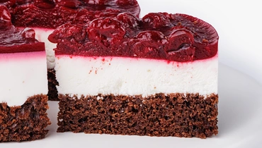 Сырная нежность, помноженная на летнюю свежесть — вот самое быстро описание этого восхитительного десерта. В его основе — высокий шоколадный корж, над которым аппетитно возвышается слой мянящего творожно-сливочного крема. А увенчан торт плотным желе со спелой вишней. Этот торт станет настоящим украшением праздичного стола. Благодаря бережной заморозке он может храниться 3 месяца, ожидая подходящего случая. Перед употреблением дефростировать в холодильнике в течение 4 часов.