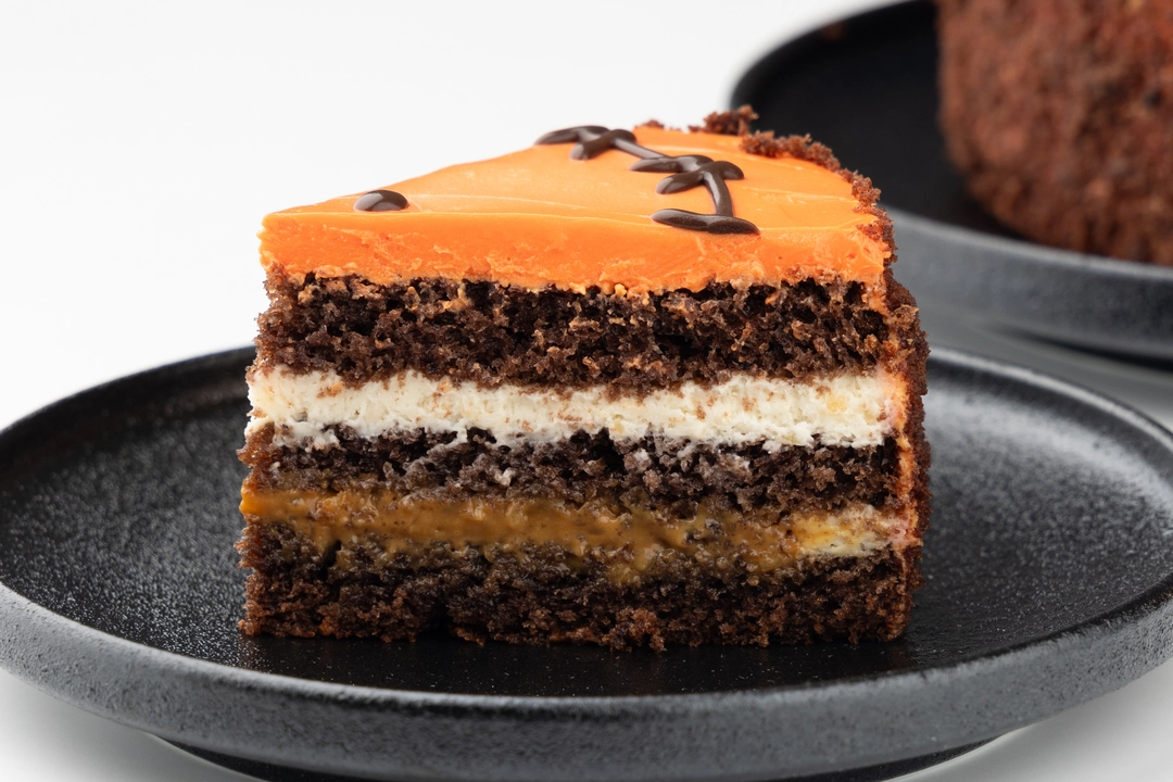 бисквит (сахар, яйцо куриное пищевое, мука пшеничная хлебопекарная высшего сорта, вода питьевая, молоко питьевое м.д.ж. 3,2%, масло подсолнечное рафинированное дезодорированное, какао-порошок, разрыхлитель - гидрокарбонат натрия (сода пищевая)), крем (сыр сливочный м.д.ж. в сухом веществе 70% (молоко пастеризованное, соль пищевая, закваска молочнокислых бактерий, молокосвертывающий ферментный препарат микробного происхождения, загустители (камедь рожкового дерева, ксантановая камедь, каррагинан), сливки питьевые м.д.ж. 33%, паста арахисовая (ядра арахиса жареные), сахарная пудра (сахар)), начинка (молоко цельное сгущенное вареное с сахаром м.д.ж. 8,5% (молоко нормализованное, сахар (сахароза, лактоза)), ядра арахиса обжаренные дробленые, вода питьевая, паста арахисовая (ядра арахиса жареные)), покрытие (сыр сливочный м.д.ж. в сухом веществе 70% (молоко пастеризованное, соль пищевая, закваска молочнокислых бактерий, молокосвертывающий ферментный препарат микробного происхождения, загустители (камедь рожкового дерева, ксантановая камедь, каррагинан)), масло сладко-сливочное несоленое м.д.ж. 82,5%, сахарная пудра (сахар), красители (кармины, аннато)), бисквитная крошка (сахар, яйцо куриное пищевое, мука пшеничная хлебопекарная высшего сорта, вода питьевая, молоко питьевое м.д.ж. 3,2%, масло подсолнечное рафинированное дезодорированное, какао-порошок, разрыхлитель - гидрокарбонат натрия (сода пищевая)), ганаш (сливки питьевые ультрапастеризованные м.д.ж. 33% (сливки нормализованные), шоколад темный (какао-масса, сахар, какао-масло, эмульгатор - лецитины (подсолнечный), ароматизатор натуральный "Ваниль")). Продукция производится на предприятии, где используются аллергены: горчица, диоксид серы (сульфиты), кунжут, моллюски, ракообразные, рыба, орехи, сельдерей, соя.
