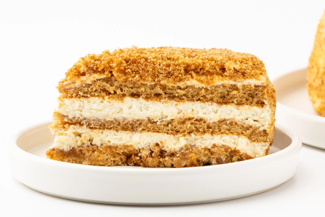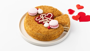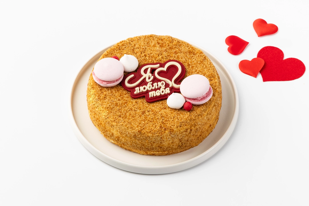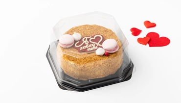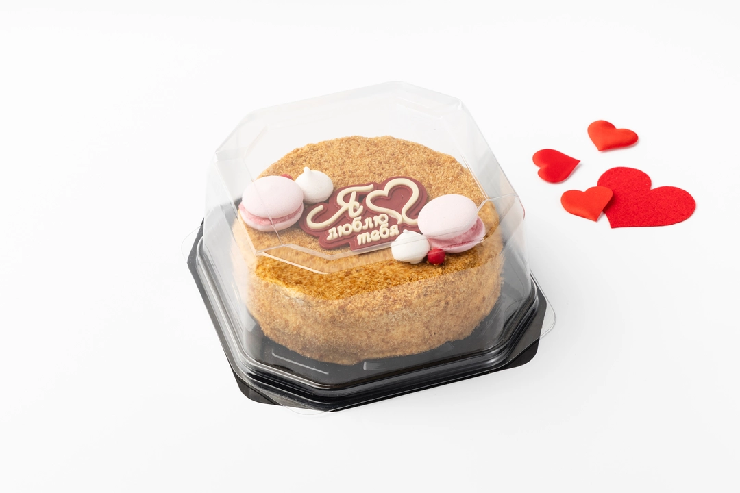 крем (сливки питьевые ультрапастеризованные м.д.ж. 33% (сливки нормализованные), сметана м.д.ж. 20% (сливки, закваска молочнокислых микроорганизмов), сахар, сметана м.д.ж. 30% (сливки нормализированные, закваска)), бисквит (мука пшеничная хлебопекарная высшего сорта, сахар, меланж яичный жидкий пастеризованный, мёд натуральный цветочный, масло сладко-сливочное несоленое м.д.ж. 72,5% (сливки пастеризованные), уксус яблочный 6%, разрыхлитель – гидрокарбонат натрия (сода пищевая)), декор (безе розовое (сахар, белок яичный жидкий пастеризованный, белая шоколадная масса (сахар, масло какао, молоко сухое цельное, молоко сухое обезжиренное, молочный жир, эмульгатор – лецитины (соевый), натуральный ароматизатор – ваниль), сливки питьевые ультрапастеризованные м.д.ж. 33% (сливки нормализованные), краситель – красный свекольный, комплексная пищевая добавка (масло подсолнечное рафинированное дезодорированное, вода питьевая, эмульгатор – лецитины (соевый), краситель – кармины, антиокислитель – лимонная кислота)), белая шоколадная масса (сахар, масло какао, молоко сухое цельное, молоко сухое обезжиренное, молочный жир, эмульгатор – лецитины (соевый), натуральный ароматизатор – ваниль), масло кокосовое рафинированное дезодорированное, комплексная пищевая добавка (вода питьевая, красители (аннато, кармины), антиокислитель – лимонная кислота), безе белое (сахар, белок яичный жидкий пастеризованный), драже красное (белая шоколадная масса (сахар, масло какао, молоко сухое цельное, молоко сухое обезжиренное, молочный жир, эмульгатор – лецитины (соевый), натуральный ароматизатор – ваниль), отруби пшеничные экструдированные (отруби пшеничные, мука пшеничная хлебопекарная первого сорта, мука рисовая, соль пищевая), комплексная пищевая добавка (вода питьевая, красители (аннато, кармины), антиокислитель – лимонная кислота), патока крахмальная карамельная), крошка (мука пшеничная хлебопекарная высшего сорта, сахар, меланж яичный жидкий пастеризованный, мёд натуральный цветочный, масло сладко-сливочное несоленое м.д.ж. 72,5% (сливки пастеризованные), уксус яблочный 6%, разрыхлитель – гидрокарбонат натрия (сода пищевая))). Продукция производится на предприятии, где используются аллергены: арахис, кунжут, орехи.