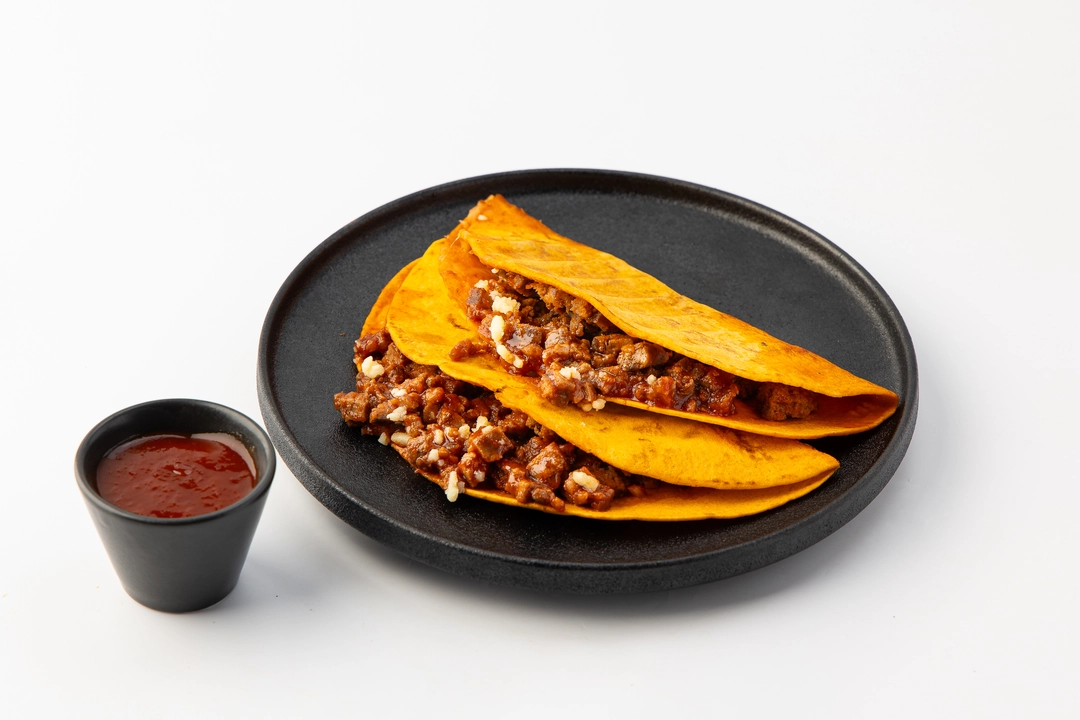 Сочные кусочки говядины с расплавленным сыром завернуты в тортилью с томатом и паприкой. Аромат чеснока и лука делает вкус более насыщенным, а красный соус сальса придаёт блюду пикантный акцент с остринкой халапеньо. Пшеничная тортилья подрумянена до золотистого цвета, а начинка остаётся сочной до последнего кусочка. Подходит для сытного перекуса в мексиканском стиле. Доступна для самовывоза из магазинов с зоной кафе.