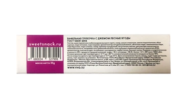 Трубочка вафельная VHQ с джемом лесные ягоды 35 г / Супермаркет