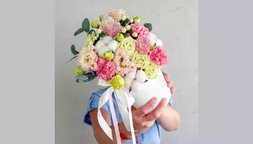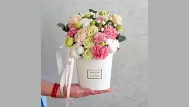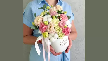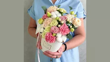 Цветы в коробке «Ванильный коктейль» FMART by flowwow