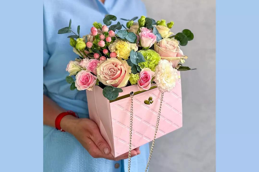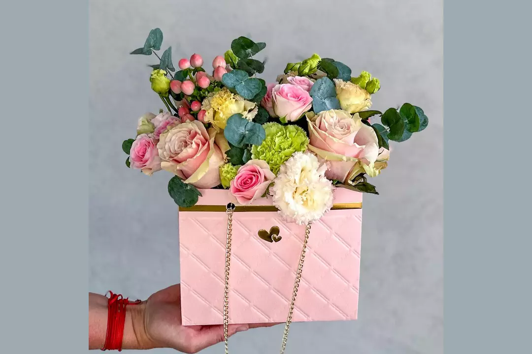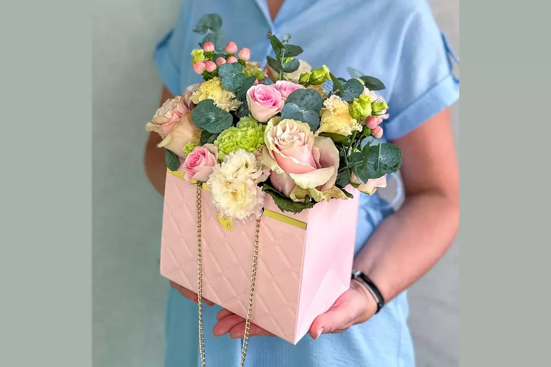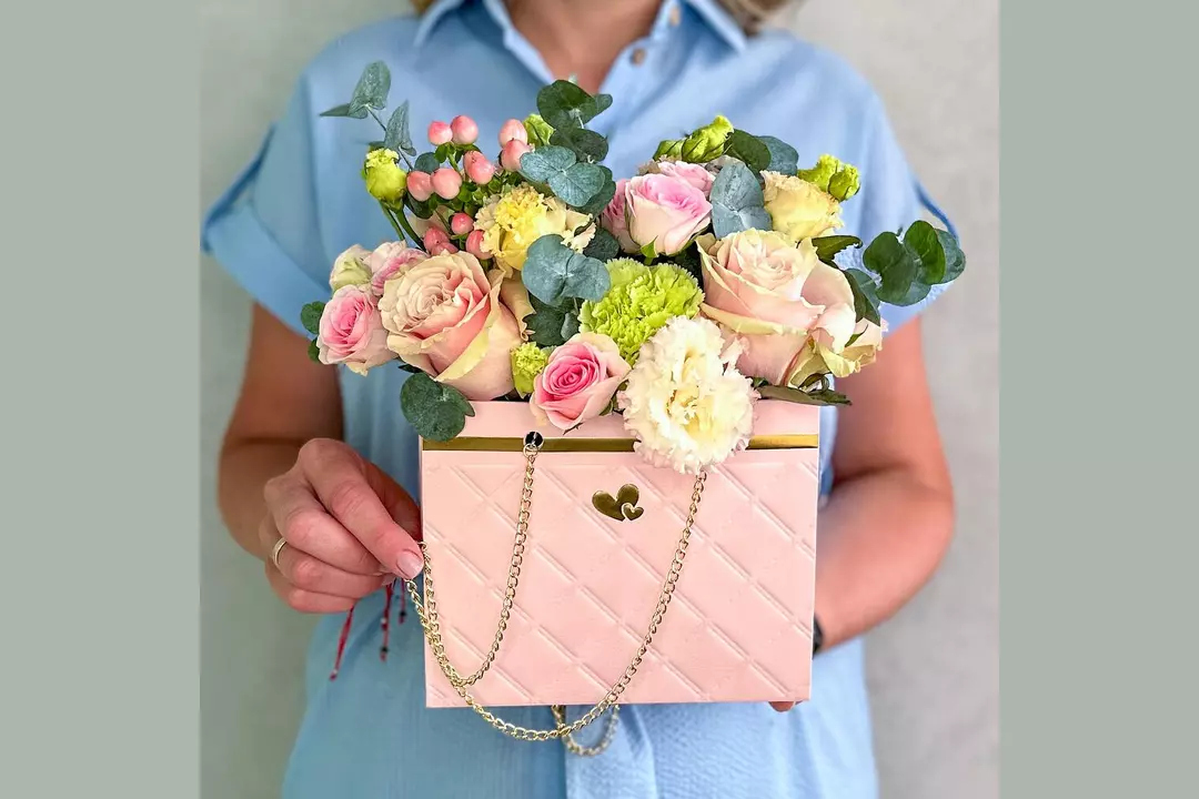 Цветы в сумочке Комплимент королеве FMART by flowwow