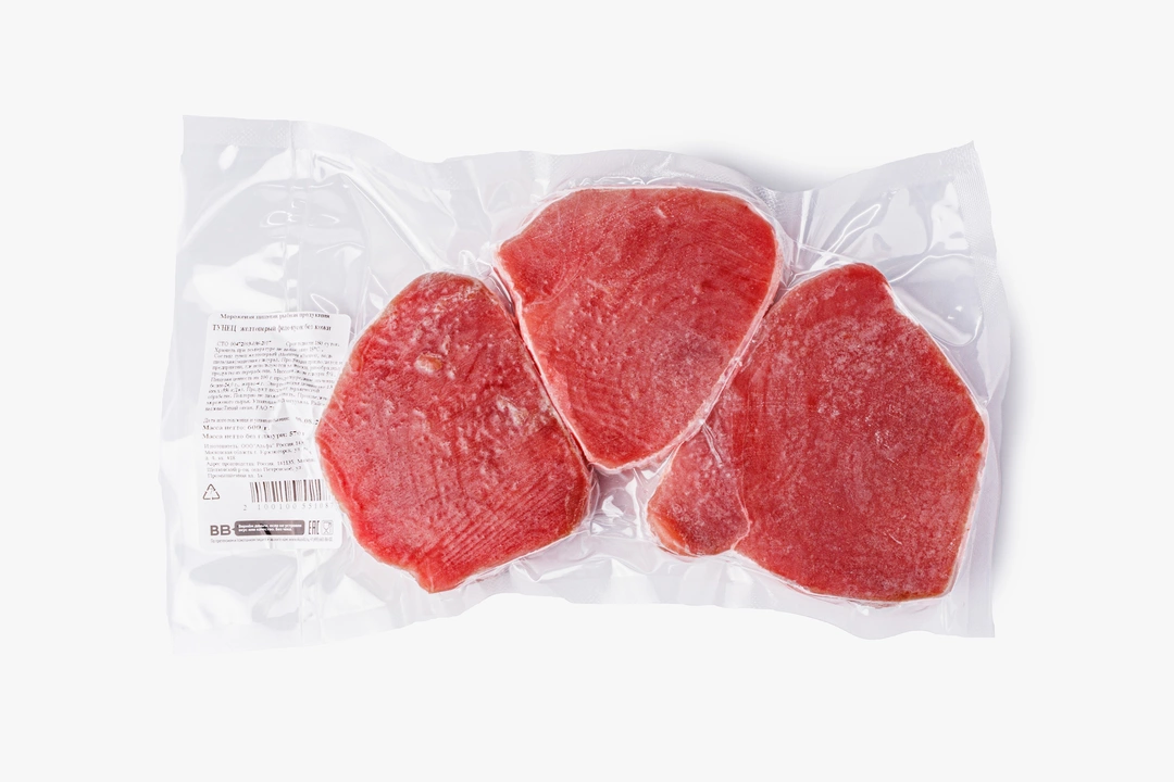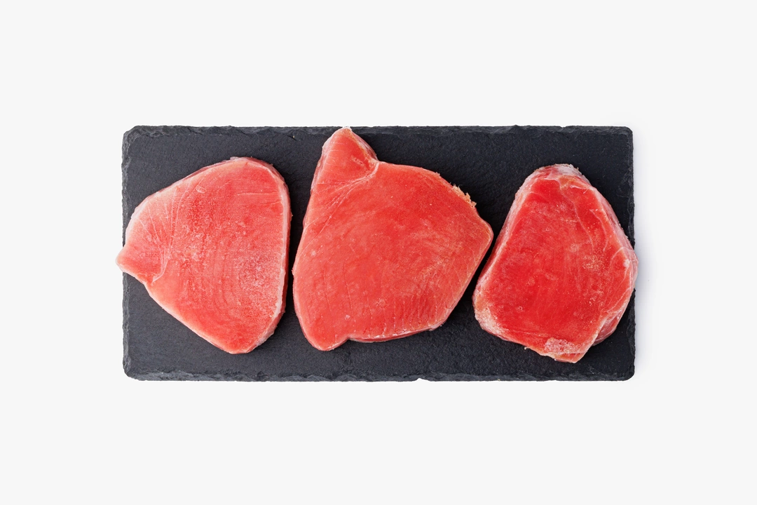 Замороженное филе дикого тунца. В рыбу не добавляют соль: на солоноватые нотки влияет её питание и место обитания. Пожалуй, ни одна рыба не получала столько похвалы, как тунец. И это оправданно: здесь и уникальный «мясной» вкус, и богатый питательный состав, и отсутствие мелких костей.