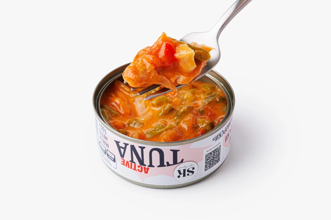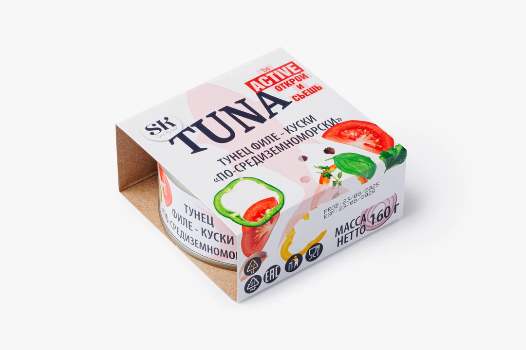 Кусочки тунца в ароматной заправке с томатной пастой, болгарским перцем и фасолью. Вкус сбалансирован благодаря пряным травам, чесноку и небольшому количеству соли. Филе тунца нежное и сочное, а заправка насыщает его ароматами овощей и пряностей. Продукт уже готов к употреблению — он подходит для сытных салатов, пасты, в качестве начинки для сэндвичей, а ещё его можно просто съесть вприкуску с цельнозерновым хлебом.