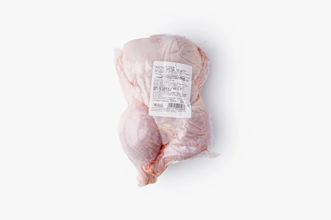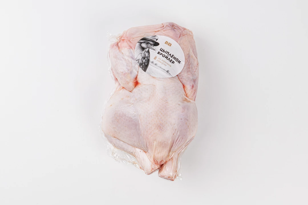 Очищенная тушка крупного цыплёнка-бройлера, откормленного зерном и кукурузой. Мясо такого цыплёнка отличается более сбалансированным вкусом благодаря бесклеточному содержанию и особенному рациону.